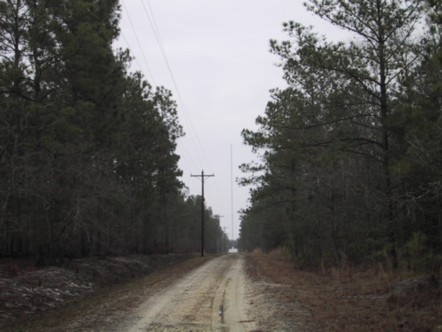 As in the tradition of naming NDBs after where they aren't (quite) - CLB isn't in Carolina Beach - there's a small matter of Cape Fear River being in the way, and you 'can't get there from there'. It is to the west of the river (Carolina Beach is to the east) and south of Wilmington, tucked away down a long driveway in woodland off a minor road. Its tower is extraordinarily big for an NDB, at over 200 feet high, and is top-loaded by the top guy-lines also. This - big antenna/ big efficiency - and the power, explains why CLB gets out so well, and is indeed usually one of the first 'DX' captures by beacon hunters. It is one of the most 'pro' NDB installations - any expectation other beacons will be anything like this one is laughably misplaced!