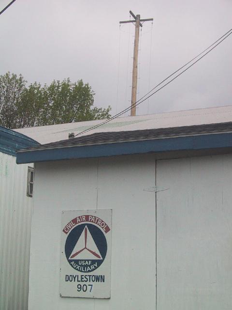 Sorry, the closest I could get. On the property of the airfield just outside Doylestown, and nobody around to ask. A remarkably similar antenna to that at 'RD' in Reading, being a 'fat' radiator made of a number of vertical wires spaced around a 'phone pole.