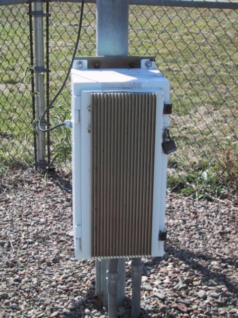 Figure out the beacon must be down a lane adjacent to the airfield; crawl down lane; repeated above performance once or twice; find it! Stop. Park. Noticed a hundred or so yards back is a Black Car. Ho-hum. Got out, camera in one hand, radio in the other, strode off towards the beacon. Whilst framing a first distance shot, a green station-wagon came hurtling across the airfield and screeched to a halt in front of me. Dude therein proceeded to give me the third degree - "Who? What? Why? You're a what? And you do this for fun? Have you touched anything?" - kind of deal. Out of the corner of my eye Black Car has moved right up behind mine. Mmm, stealthy antennas on it . . .