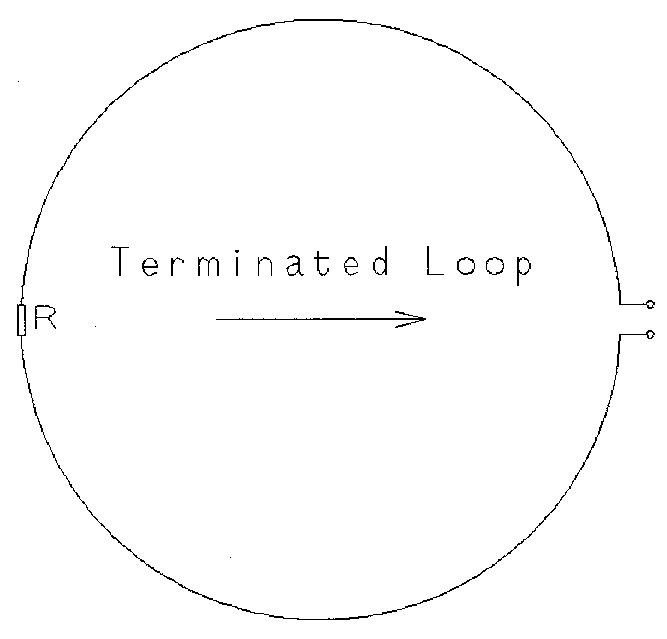 In the terminated loop, if the termination is zero (shorted) then the loop acts as, well, a loop with its well-known figure-8 response; if the termination is opened then it acts as merely a 'halo' bent dipole, with a substantially omnidirectional response in the horizontal plane; with the termination resistor value at some point in between, the balanced 'mix' of conventional loop and dipole responses, figure-8 and omni, result in a cardioid response, just as with the loop-and-sense arrangement. Why didn't the terminated loop hit the big-time before? Because the small sized, non-resonant loop and the termination resistance make the antenna lossy, inefficient and insensitive. But such trifles have never got in the way of us hambones.
