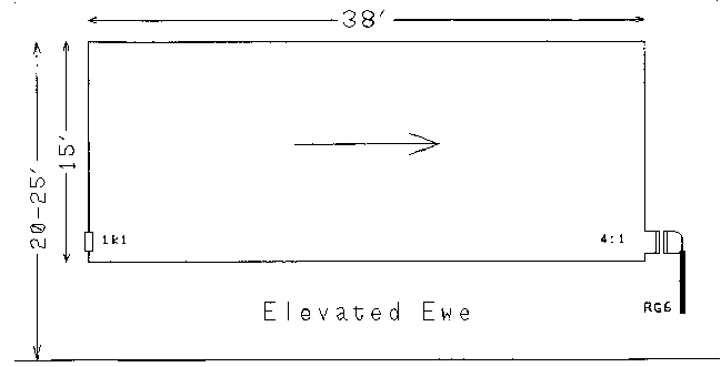 The 'Ewe' (Fig. 2, top left), perhaps the best well-known of the genre after being introduced by Floyd Koontz in 'QST' magazine, can be considered exactly half that loop, using ground as the divider and return. Fig.2, top middle is an elevated Ewe, wire replacing the ground return. The 'imbalance' of termination and feedpoint hardly affects the theoretically available cardioid pattern at all. Indeed the K9AY (Fig.2, bottom right) brings the termination and feedpoint right together, (dramatically easing direction switching etc.) but does demand a ground or plane at that point as a potentiometric separator. Again, near identical cardioid. Same with the 'Flag' and 'Pennant' (owing to Earl Cunningham, K6SE), the 'Kaz' (Neil Kazaross, a prominent medium-wave DXer) and pretty much every other elevated terminated loop (ETL).